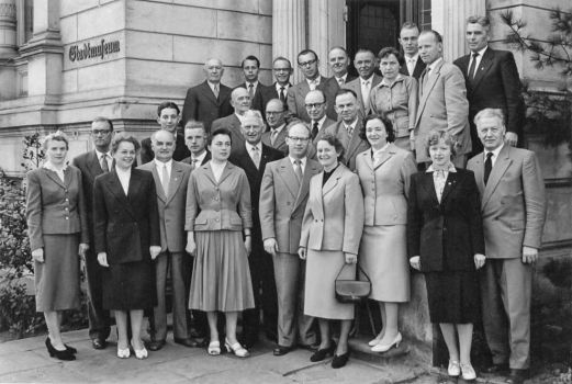 Dieses aus Anlass des 100-jährigen Bestehens der Stenografen-Vereinigung Oldenburg e. V. im Jubiläumsjahr 1957 aufgenommene Foto zeigt den Beirat, die Übungsleiter und den erweiterten Vorstand.