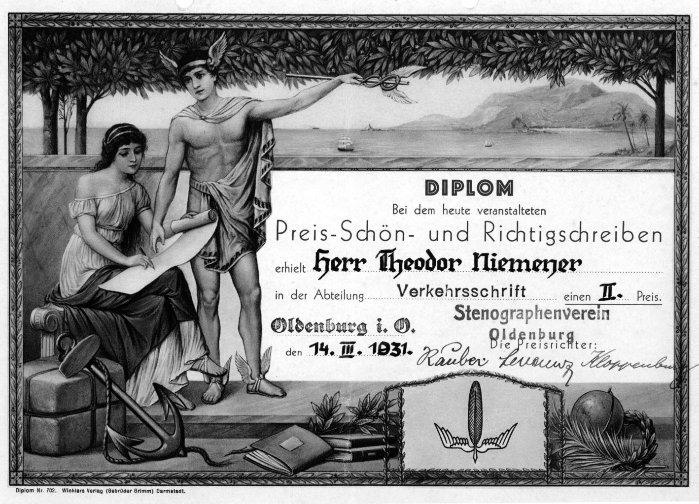 | Der Stenografenverein Oldenburg (der ehemalige Gabelsberger-Verein) fungiert nach der Auflösung des Deutschen Stenografenbundes als Ortsgruppe der Deutschen Stenografenschaft im NS-Lehrerbund. | |